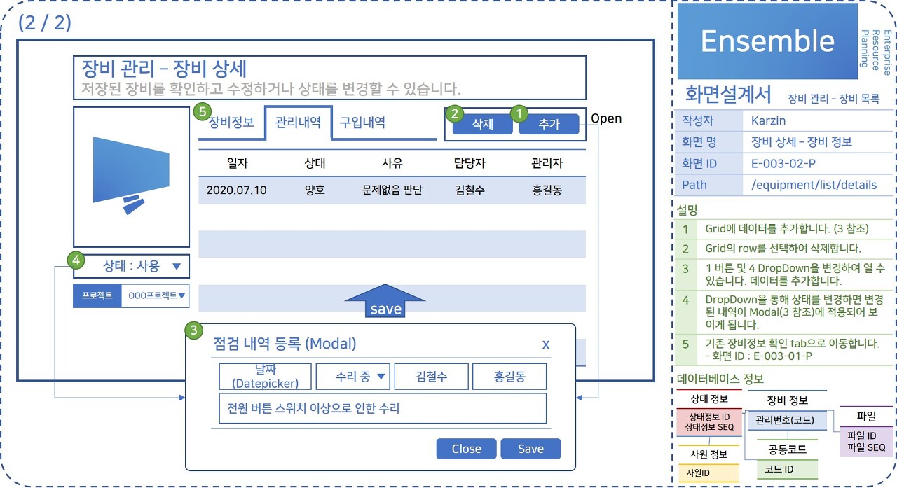 Project.다원 Ensemble_설계(7)_장비관리-장비상세 Wireframe&화면설계서(3)