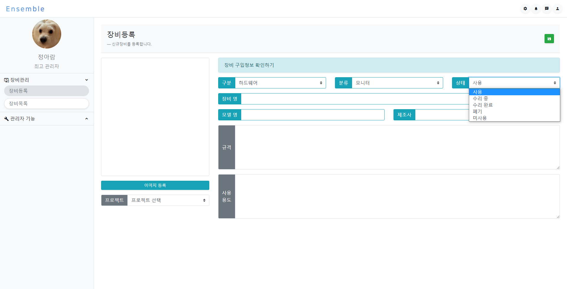 Project.다원 Ensemble_개발(14)_장비등록 - 공통코드 연동작업